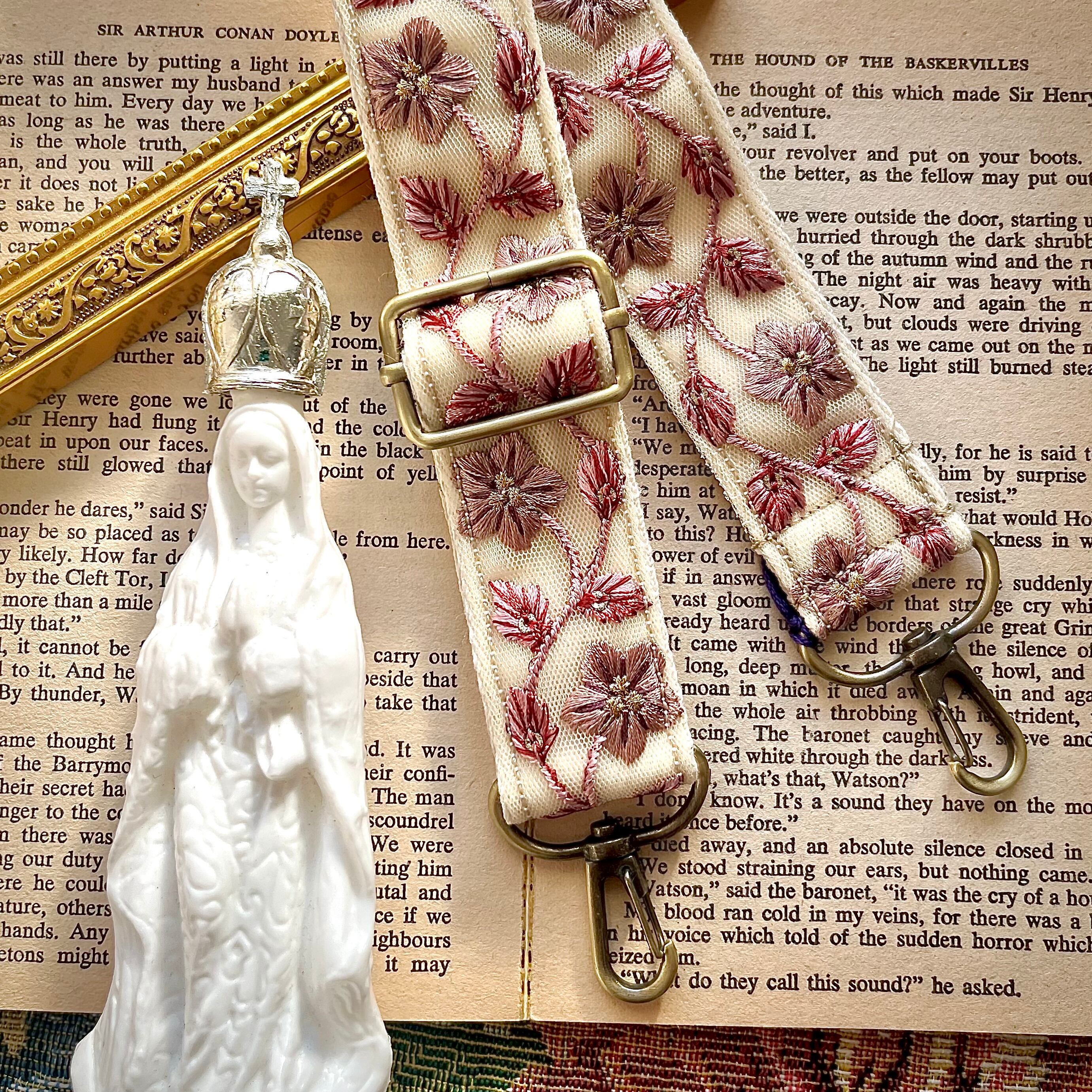 【SALE】ベージュ×ピンクのインド刺繍リボンショルダー紐
